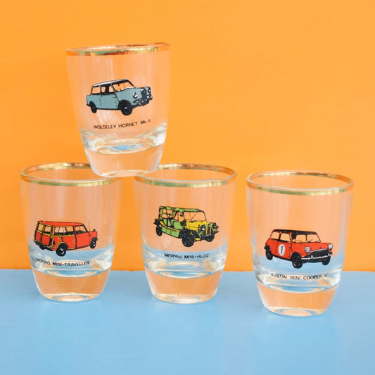 Vintage 1960s Shot Glasses - Different Mini Cars x4