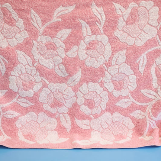 Vintage 1970s Cotton Bath Towel - Pink Flowers (2 Available)