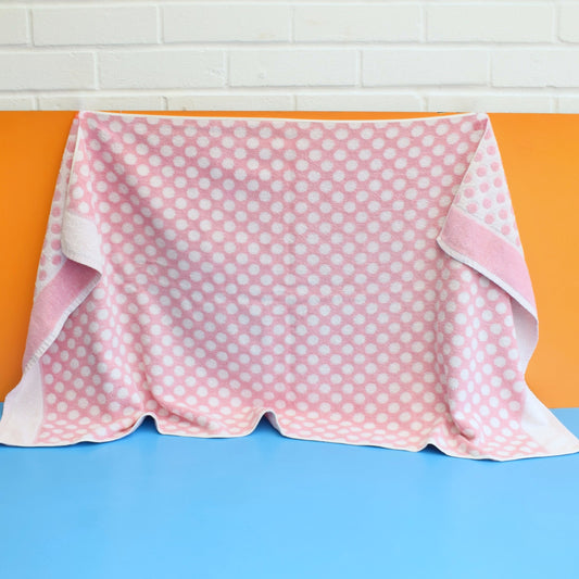 Vintage 1970s Cotton Bath Towel - Pink & White Spots