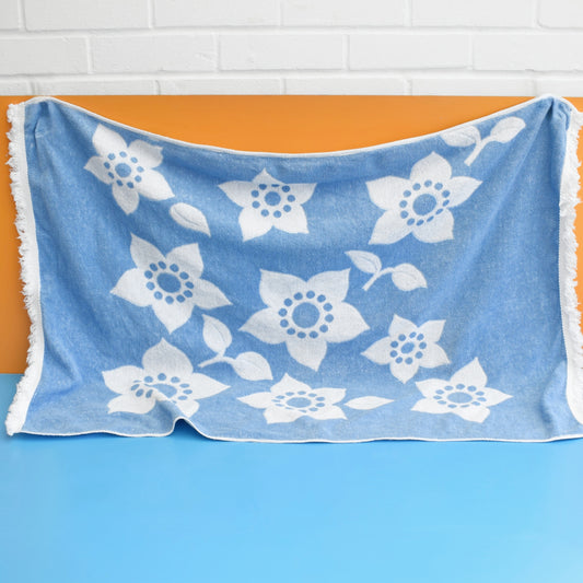Vintage 1970s Cotton Bath Towel - Blue Flowers (2 Available)