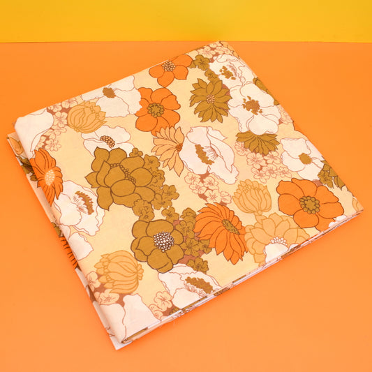 Vintage 1960s Double Sheet - Bold Flower Power - Orange & Brown