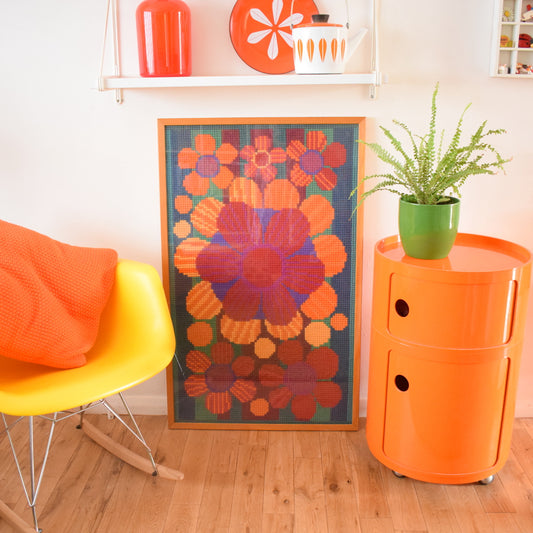 Vintage 1960s Fantastic Large Swedish Embroidery Picture - Flower Power