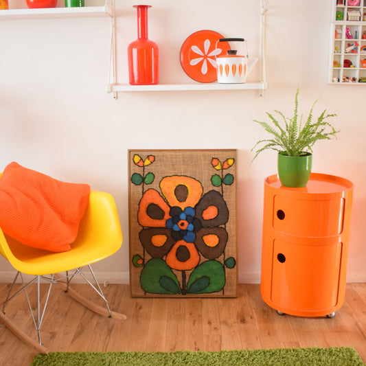 Vintage 1960s Large Swedish Hessian Collage Picture / Painting - Lennart Olsson - Flower Power