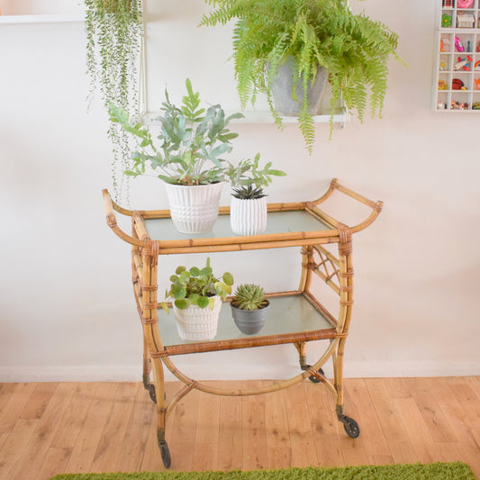 Vintage 1950s Bamboo Trolley - Drinks Bar / Side Unit / Plant Stand - Natural