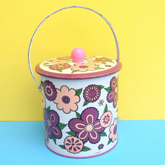 Vintage 1960s Metal Barat Ware Biscuit Tin - Flower Power - Purple
