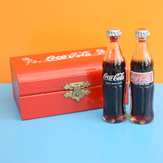 Vintage 1980s Mini Glass Coke Bottles In Wooden Box / Coca Cola