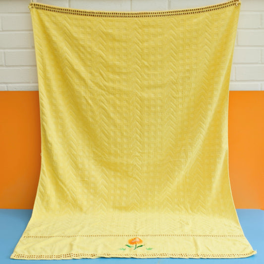 Vintage 1970s Towel - Yellow - Sunflower Embroidery
