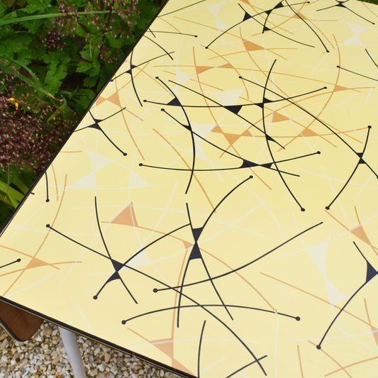 Vintage 1950s Drop Leaf Formica Table - Yellow - Atomic Print