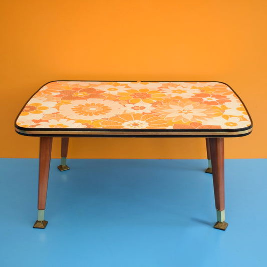 Vintage 1960s Low Table - Orange Flower - Screw In Legs