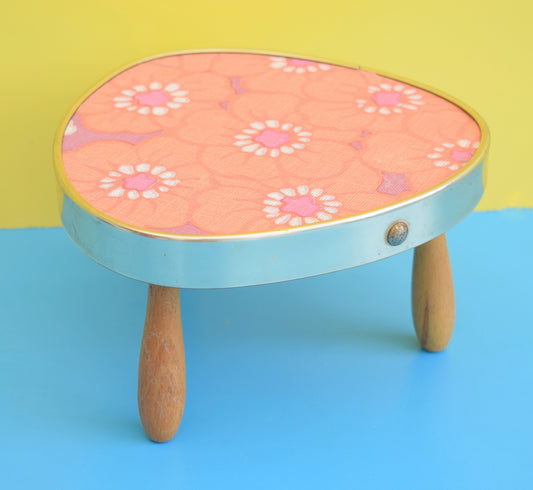 Vintage 1950s Mini Table - Plant / Lamp - Peach / Pink / Purple Flower Power