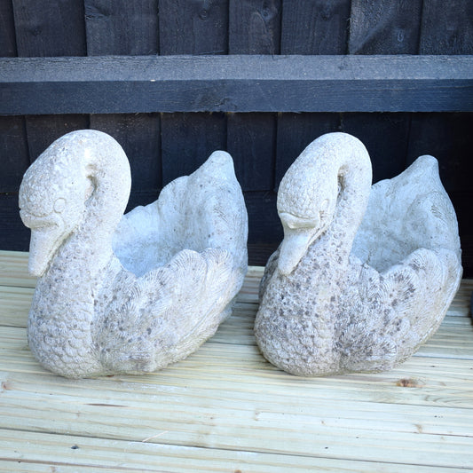 Vintage 1950s Concrete Swan Planters / Garden Ornaments - Kitsch & Heavy
