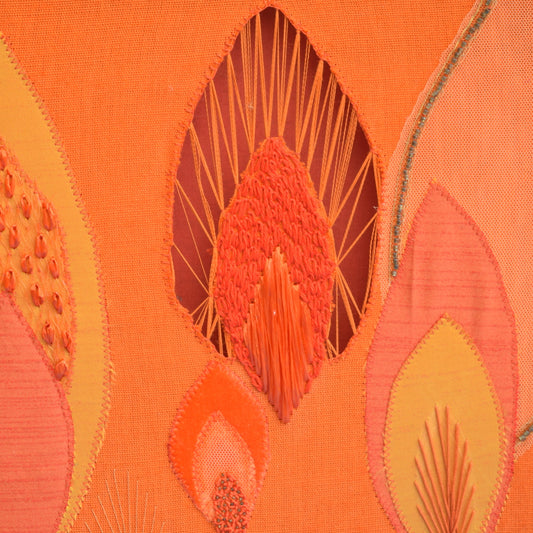 Vintage 1960s Embroidered / Collage Picture - Flames - Red, Orange & Yellow