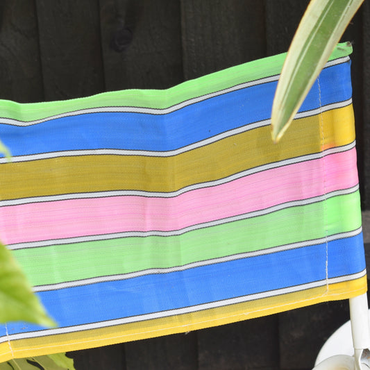 Vintage 1960s Striped Nylon Folding Stool / Chair - Blue, Yellow, Pink & Green