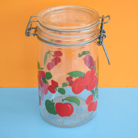 Vintage 1980s Glass Fruit Jar - Red Cherries, Apples