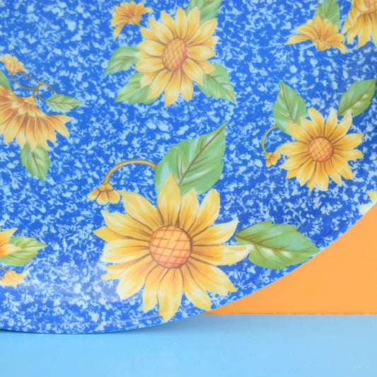 Vintage 1990s Tray - Round Melamine- Sunflowers & Blue