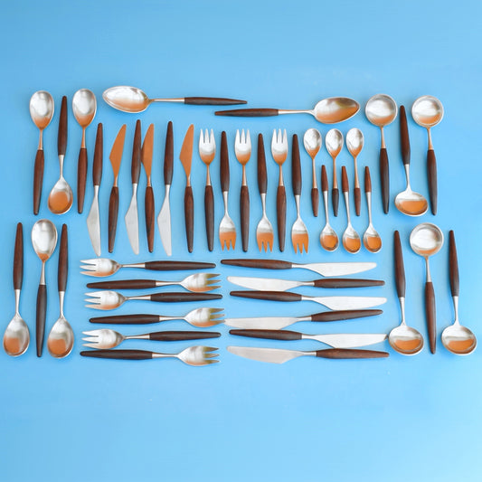 Vintage 1960s Cutlery Set - Butler - Sheba Pattern - Dark Wood