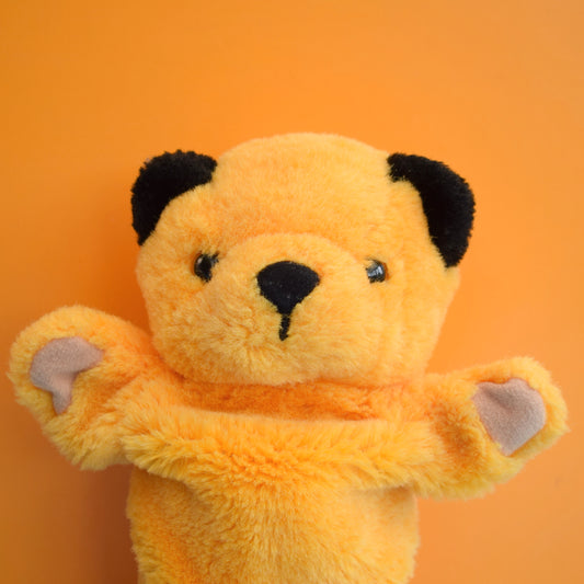 Vintage 1980s Fluffy Sooty Bear Hand Puppet - Yellow