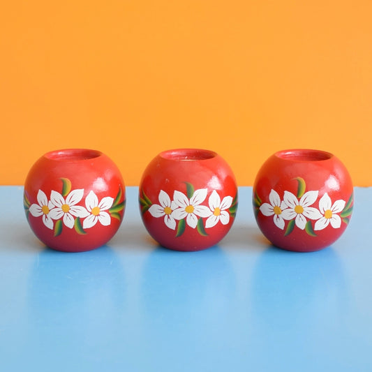 Vintage 1960s Swedish Wooden Candle Holders - Red