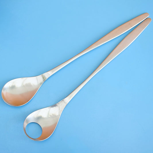 Vintage 1960s Stainless Steel Salad Bowl & Salad Servers - Stelton Denmark