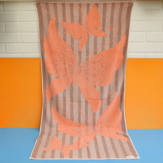 Vintage 1970s Bath Towel - Peach Butterfly Design