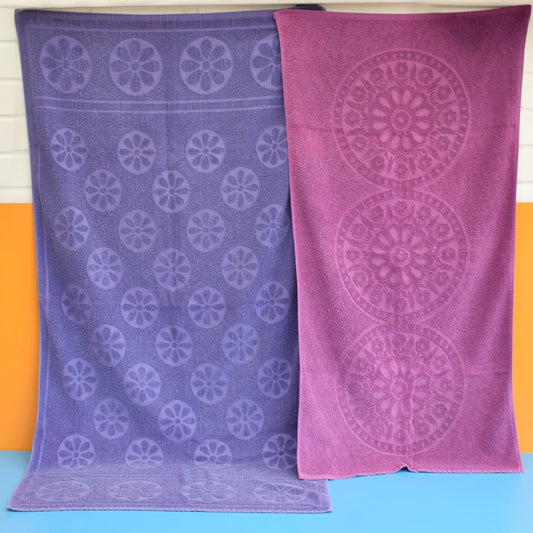 Vintage 1970s Towel - Self Coloured Designs- Purple