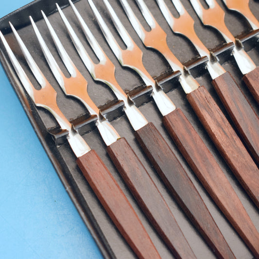 Vintage 1960s Little Forks- Unusual Wooden Handles- Boxed