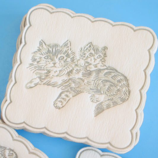 Vintage 1960s Kitsch Paper Coasters - Cat/ Kittens x13