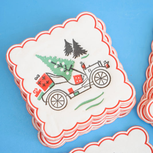 Vintage 1960s Kitsch Christmas Paper Coasters - Car x19