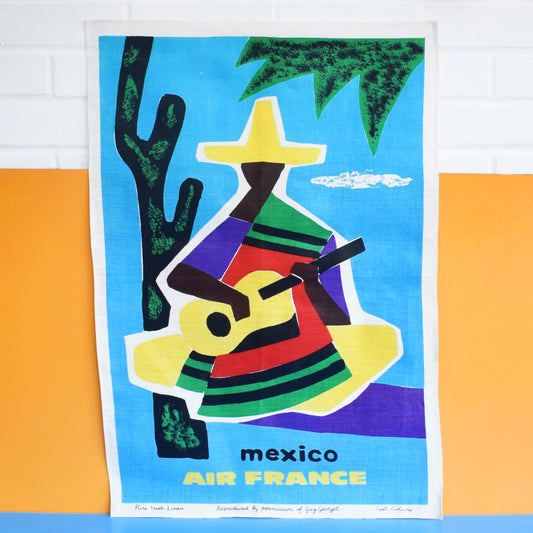 Vintage 1960s Tea Towel / Poster - Air France Mexico - Guy Georger