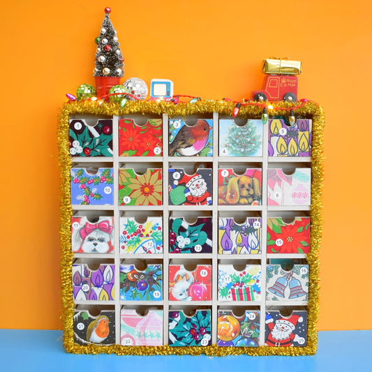 Unique Wooden Multi Drawer Advent Calendar - Vintage Papers - Patchwork