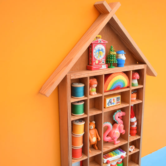 Vintage 1970s Pine House Shaped Collectables Shelf