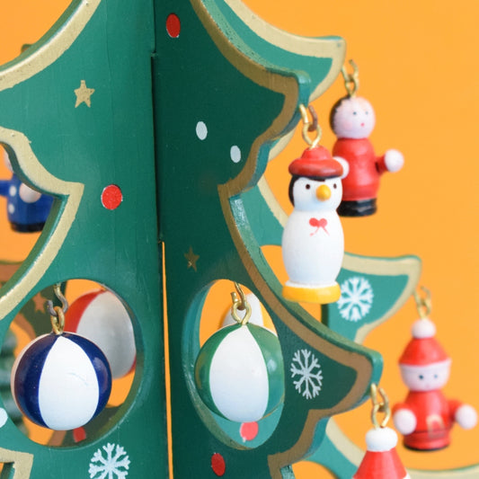 Vintage 1990s Musical Wooden Christmas Tree & tiny Decorations
