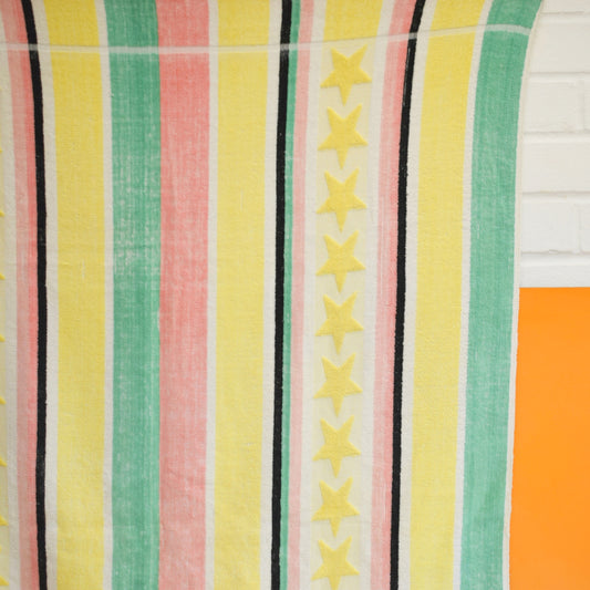 Vintage 1960s Cotton Towel - Pastel Stripes/ Stars