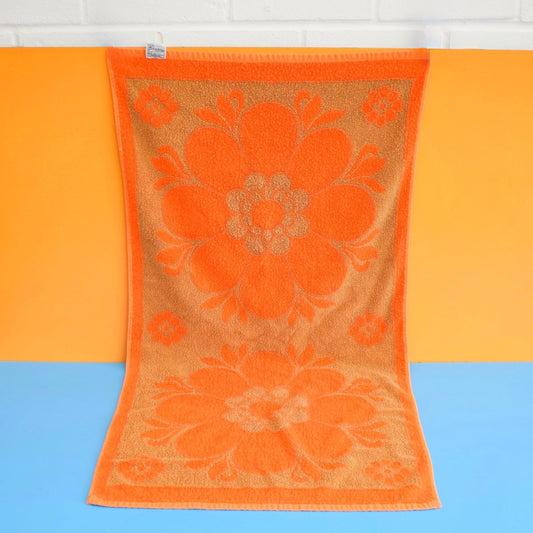 Vintage 1970s Cotton Hand Towel - Orange & Brown Flowers