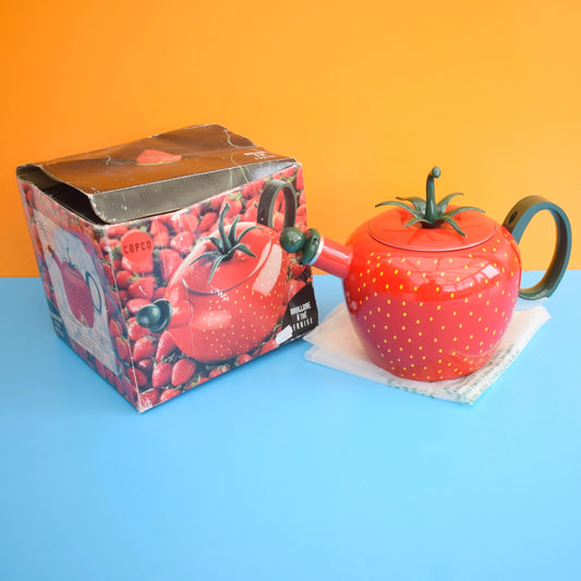 Vintage 1990s Copco Enamel Kettle - Strawberry Shaped - Boxed .