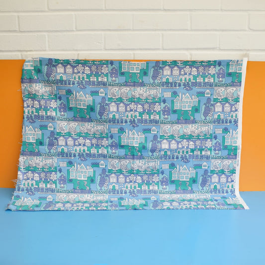 Vintage 1960s Sewing / Hobby Box - Green, Blue & Lilac Fabric