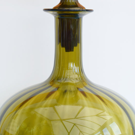 Vintage 1960s Italian Blown Glass Genie Bottle - Olive Green - Empoli