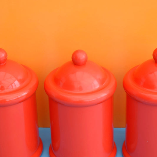 Vintage 1970s Plastic Storage Canisters - Working Kitchen- Habitat - Red x3