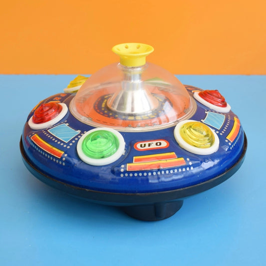 Vintage 1970s Blowing Ball UFO Tin Plate Toy - Battery Operated - Boxed