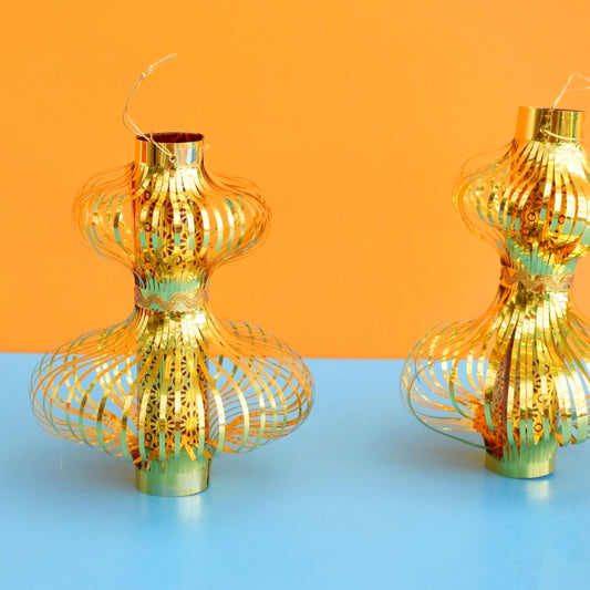Vintage 1970s Foil Christmas Decorations Gold Chinese Lanterns x2