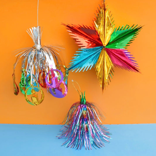 Vintage 1980s Foil Christmas Decorations - Rainbow Group