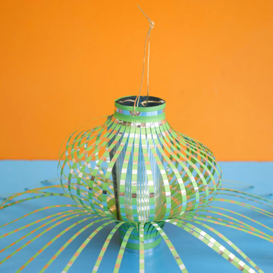Vintage 1970s Foil Christmas Decorations Striped Lanterns x2