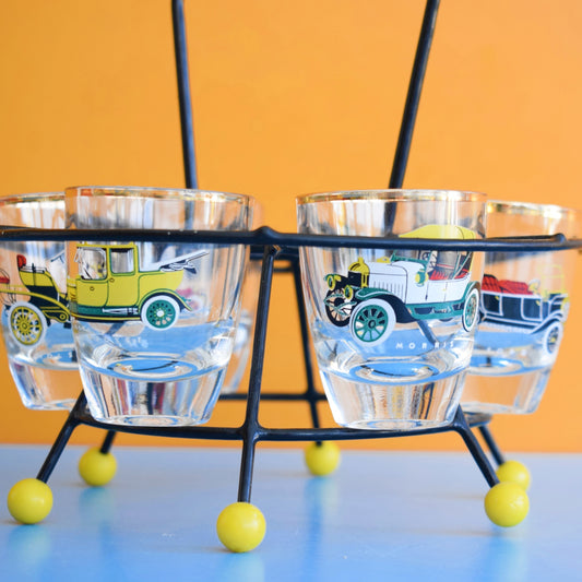 Vintage 1960s Set of Shot Glasses On Stand - Classic Cars