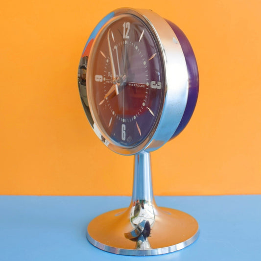 Vintage 1970s Pedestal Alarm Clock - Purple & Chrome - Westclox