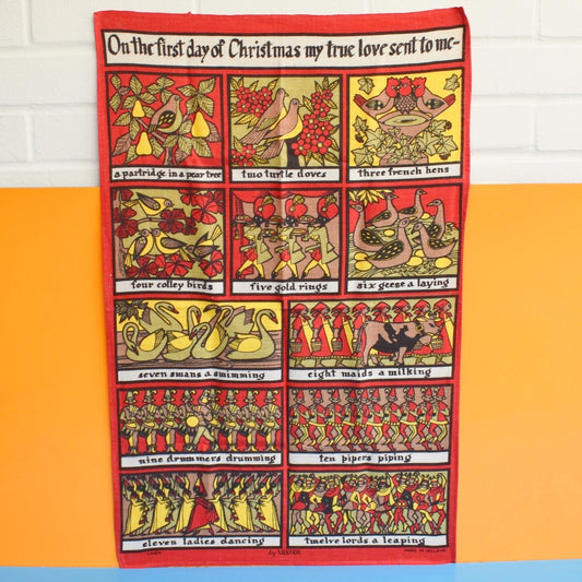Vintage 1970s Calendar Tea Towel - The Twelve Days Of Christmas - Unused