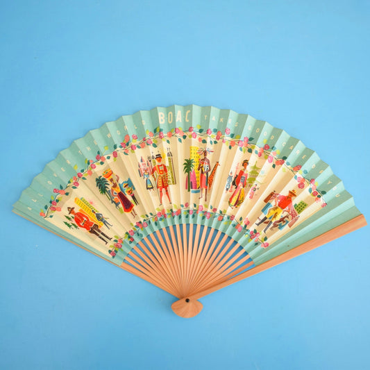 Vintage 1960s BOAC Paper Fan - Turquoise Blue