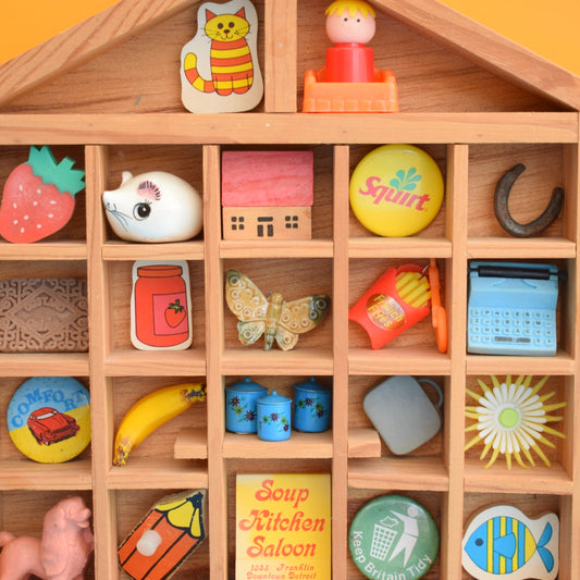 Vintage 1970s Pine House Shaped Collectables Shelf & Contents