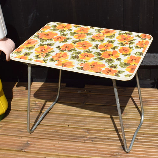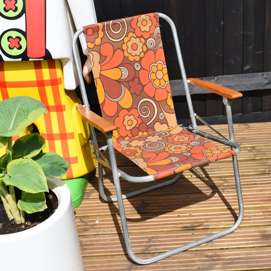 Vintage 1960s Folding, Garden Chair - Flower Power - Orange & Brown