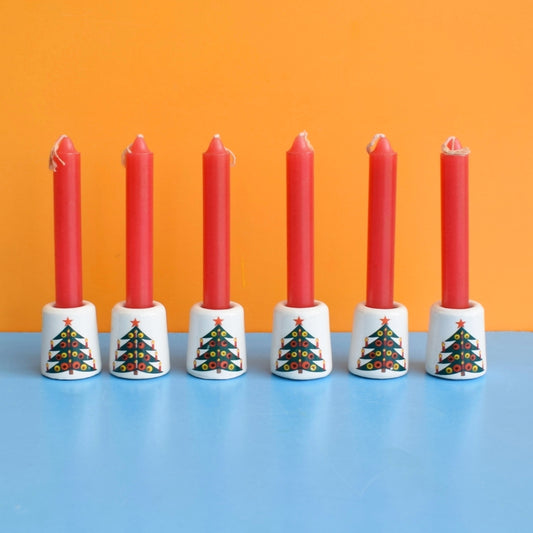 Vintage 1970s Ceramic Mini Christmas Candles & Holders x6