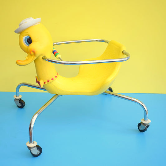 Vintage 1960s Kitsch Plastic / Chrome Mr Duck On Wheels - Canova Italy - Yellow & Chrome